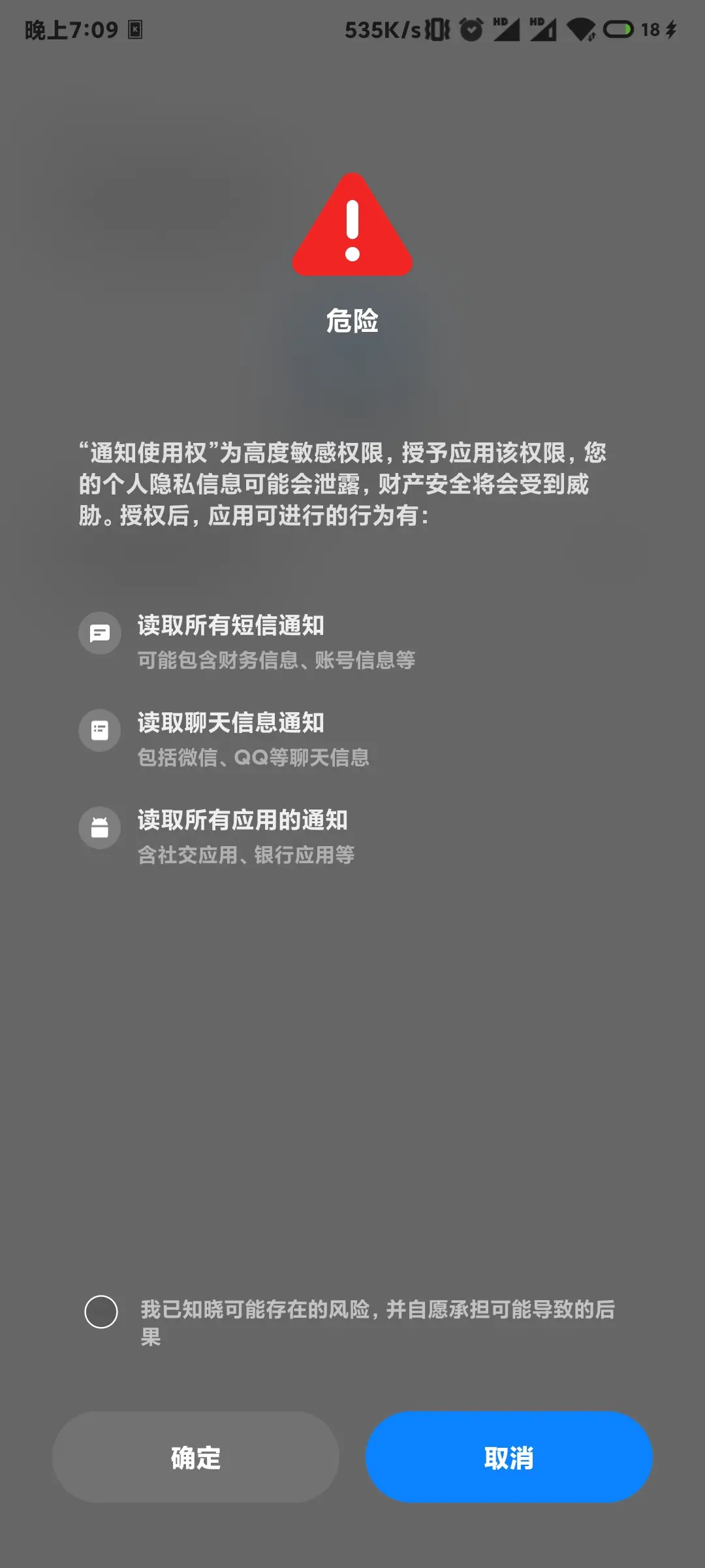在用户授予某个应用某些敏感权限(通知使用权、允许安装apk等)或进行其他敏感操作时,MIUI会弹出来一个这样的十秒盾,强行要求用户等待十秒,应该是为了防止不太懂手机的用户收流氓软件蛊惑授予流氓软件敏感权限,虽然我不太明白这有什么用,但是其初心还是好的,不过没有一个关闭按钮就很烦了。
